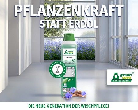 Tawip neo ist eine innovative Wischpflege auf Basis eines neuartigen, wasserlöslichen Biopolymers pflanzlichen Ursprungs. Für das kreislauffähige Produkt ersetzt Green Care Professional umweltbelastende, erdölbasierte Polymere durch ein Biopolymer, das direkt aus der europäischen Zichorienwurzel gewonnen wird und nachgewiesen vollständig biologisch abbaubar ist.