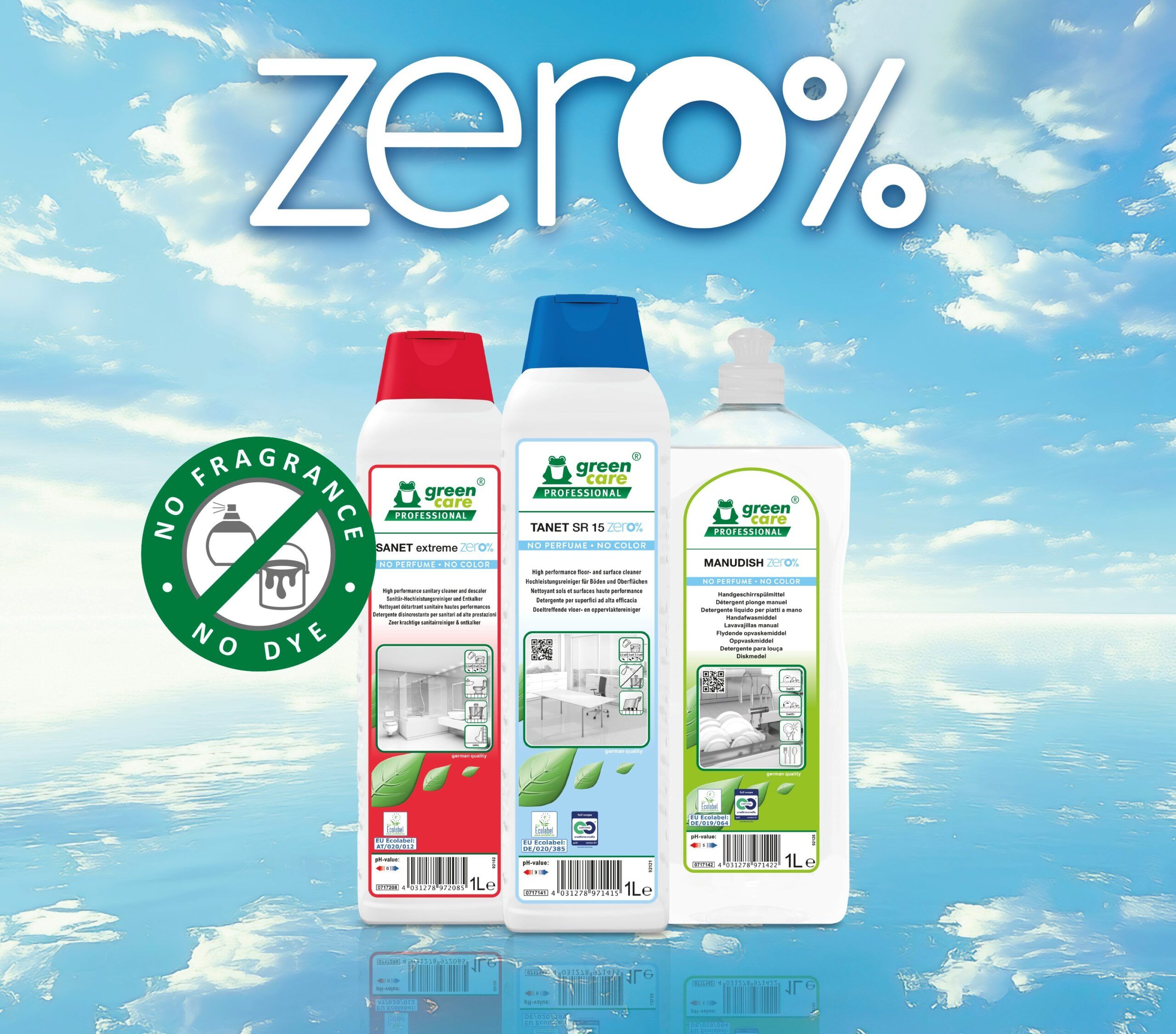 Free of dyes and odorless, with maximum cleaning power: For the new Zero product range, Werner & Mertz Professional developed cleaning products free of all dyes and fragrances with special consideration given to allergy sufferers. This new edition of the proven F-Range comes to the market and it includes 14 high-performance cleaning and care products for use in building cleaning.