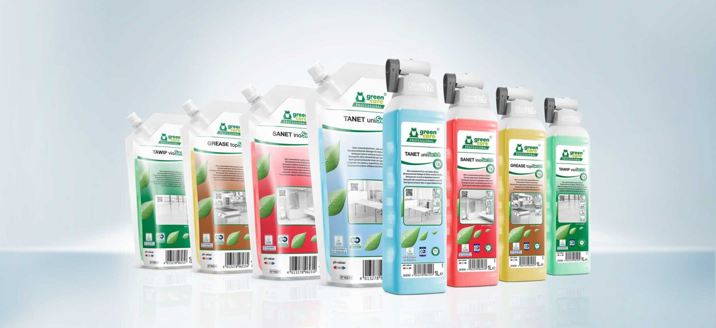 Our innovative Switch System combines efficient, exact dosing without extra equipment with the advantages of sustainable, economical refilling. Available for four different areas of application, the ultra-concentrated formulations satisfy the highest sustainability requirements.